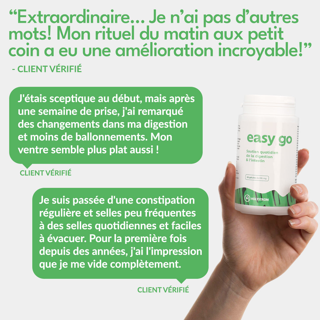 La salute dell'intestino è un processo continuo e molti dei nostri clienti hanno scoperto che i benefici di Easy Go aumentano con un uso regolare e prolungato.